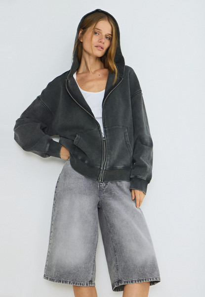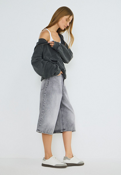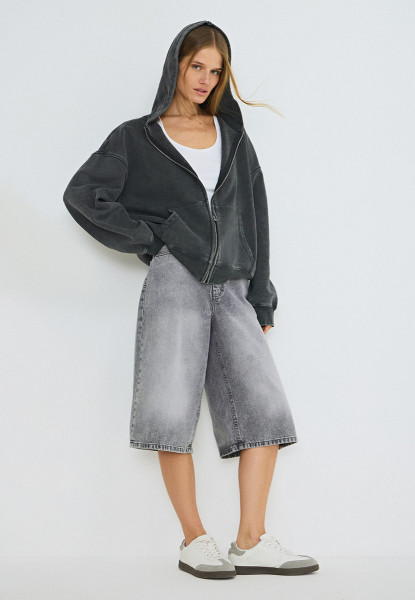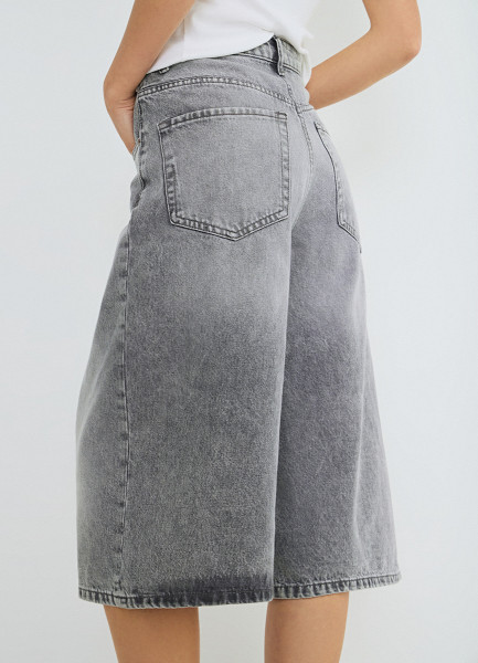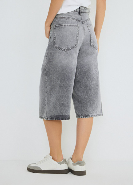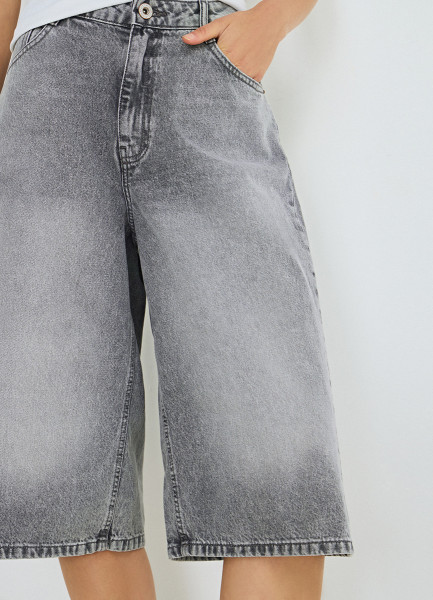 Джинсовые шорты-бермуды с высокой посадкой, Серый