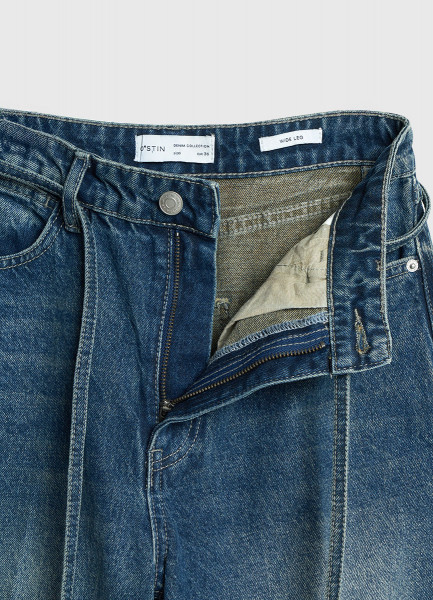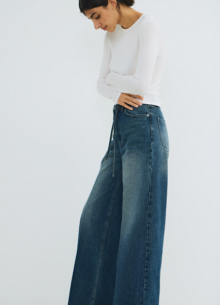Широкие джинсы с поясом, Синий
