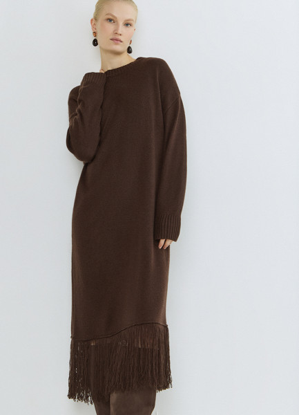 Вязаное платье с бахромой, Коричневый