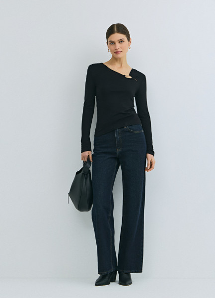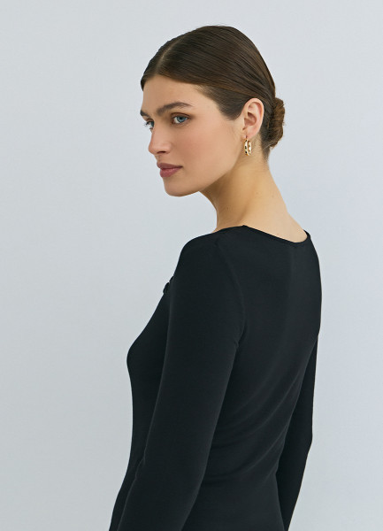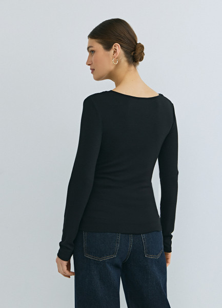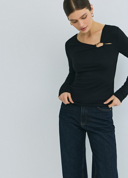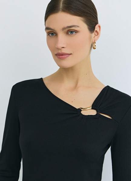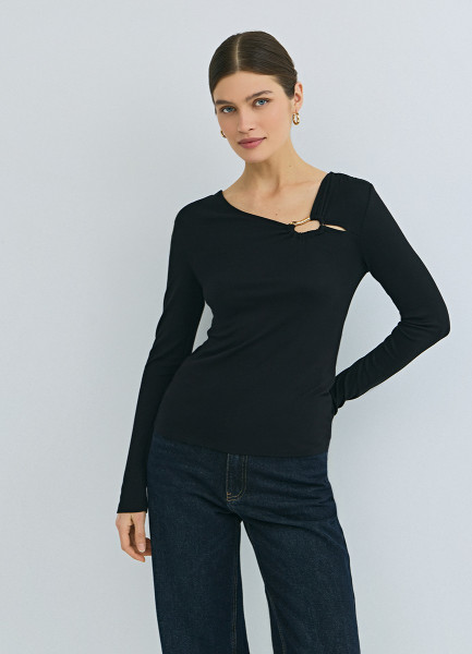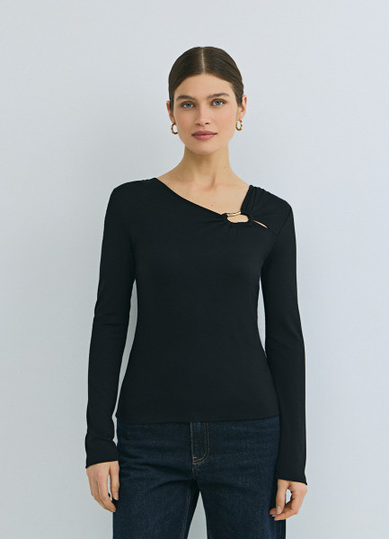 Лонгслив с асимметричным вырезом, Черный
