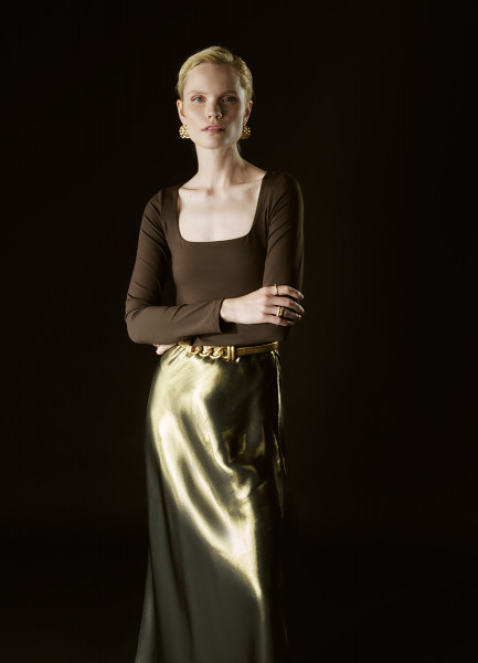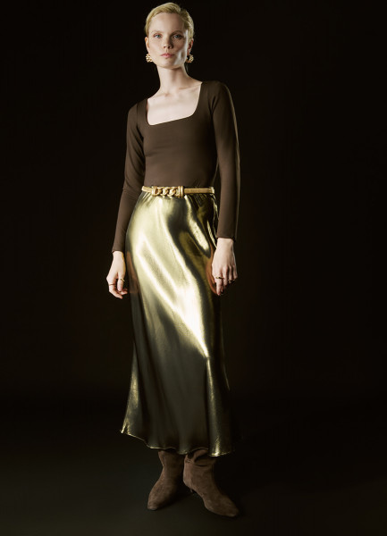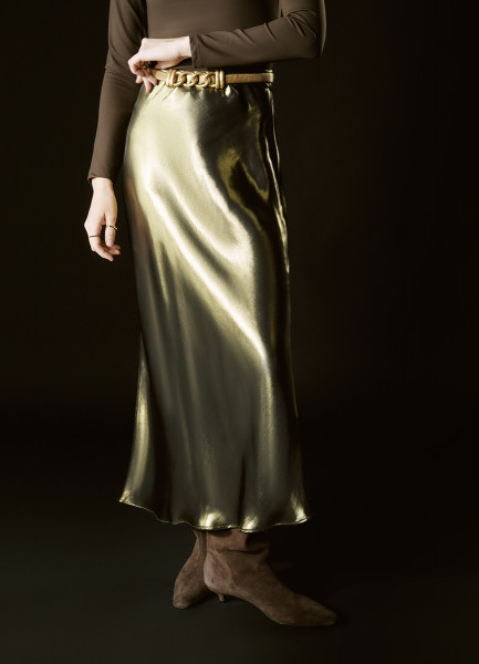 Юбка из ткани с эффектом жидкого золота, Золотой