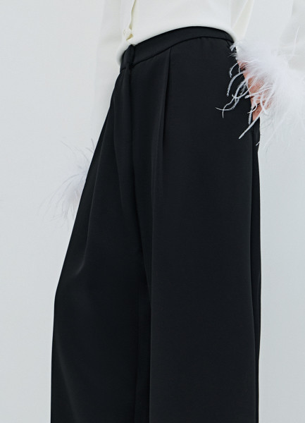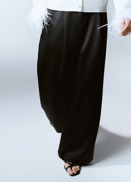 Атласные прямые брюки, Черный