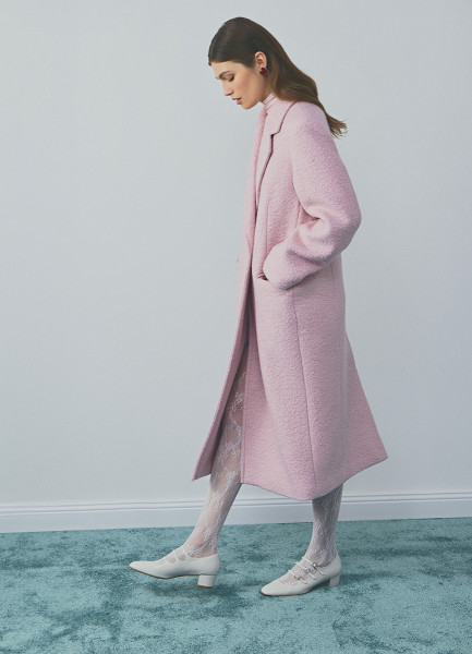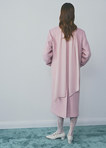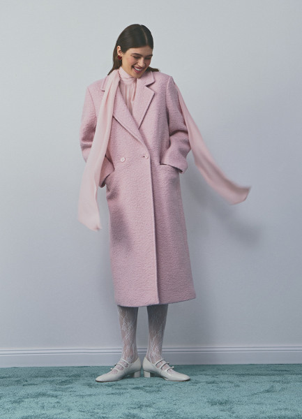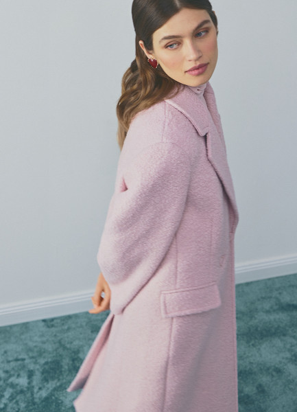 Длинное двубортное пальто из шерсти, Розовый