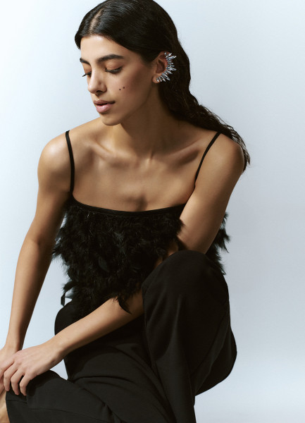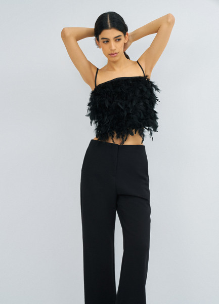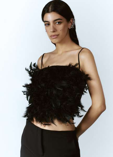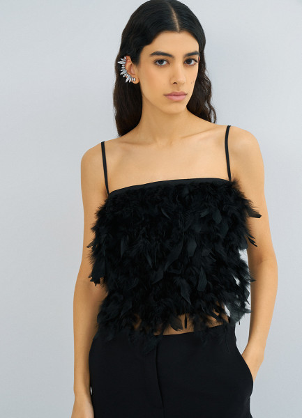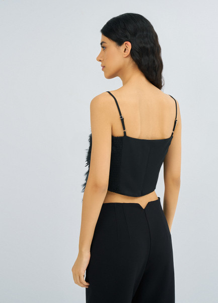 Топ с натуральными перьями, Черный