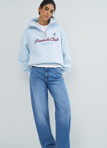 Толстовка с принтом и воротником на молнии, Розовый