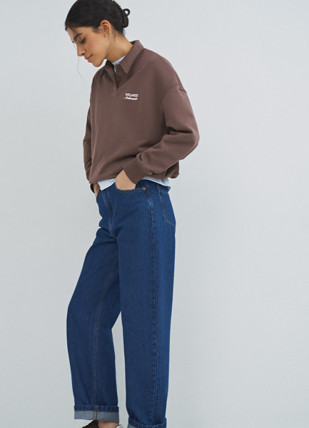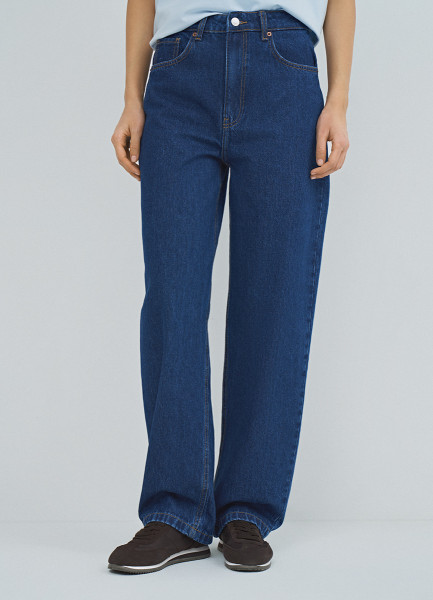 Прямые джинсы с высокой посадкой, Голубой