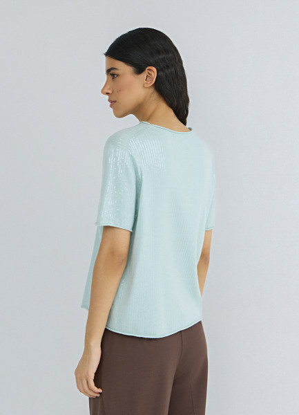 Джемпер с пайетками и коротким рукавом, Зеленый