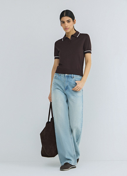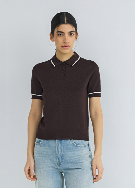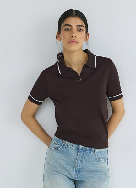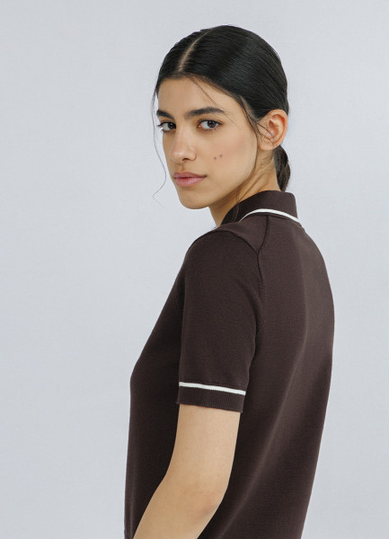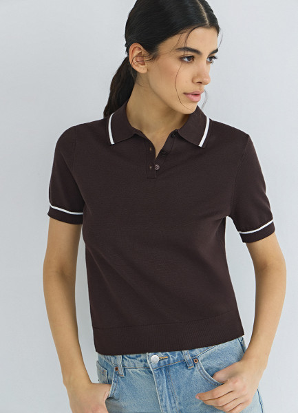 Базовый джемпер поло с коротким рукавом, Коричневый