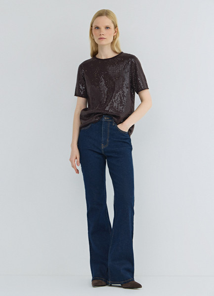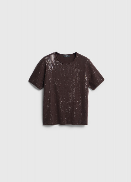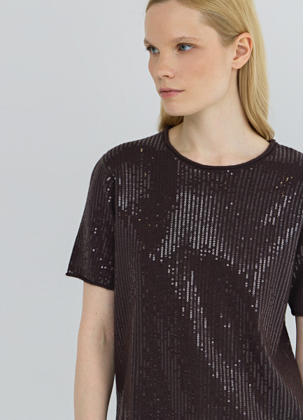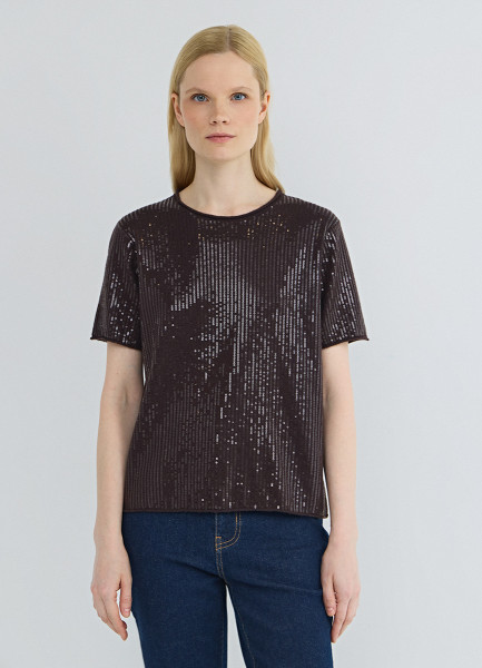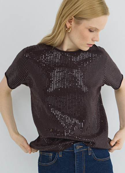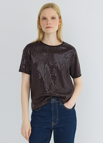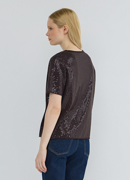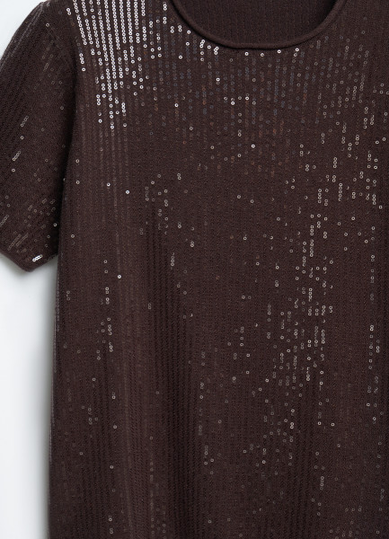 Джемпер с пайетками и коротким рукавом, Коричневый