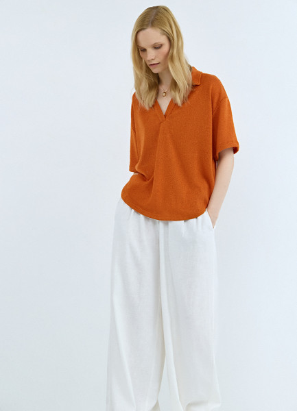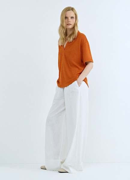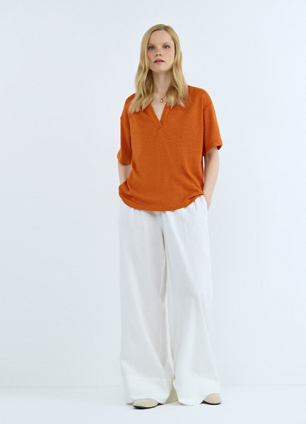 Футболка с круглым вырезом изо льна и хлопка, Оранжевый