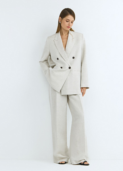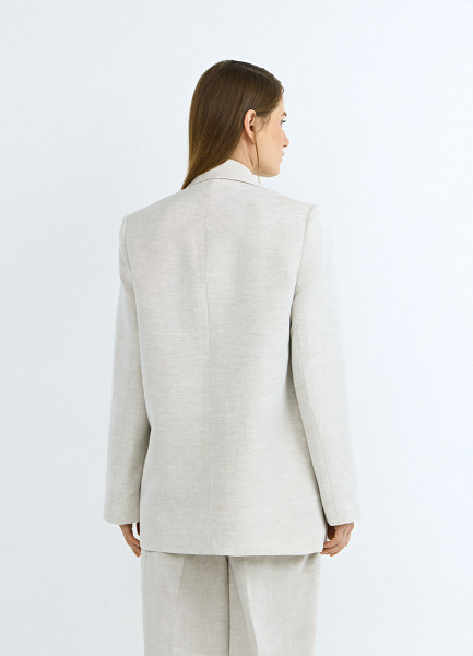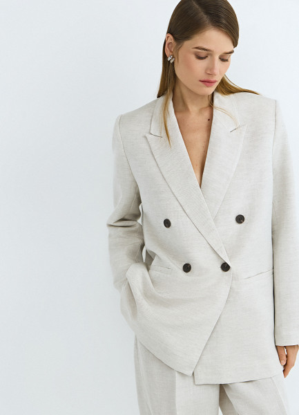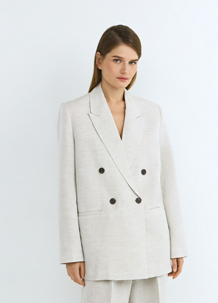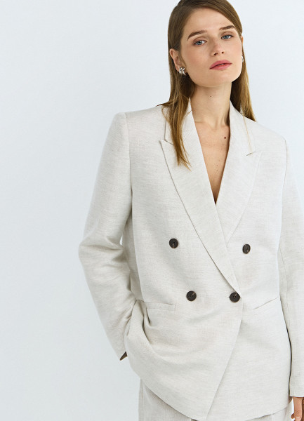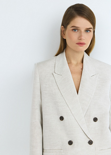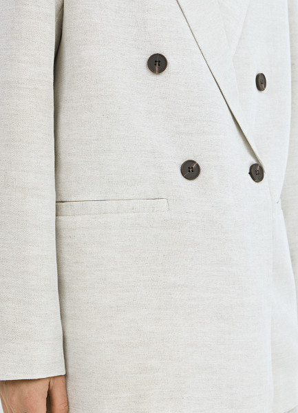 Двубортный жакет из вискозы и льна, Бежевый