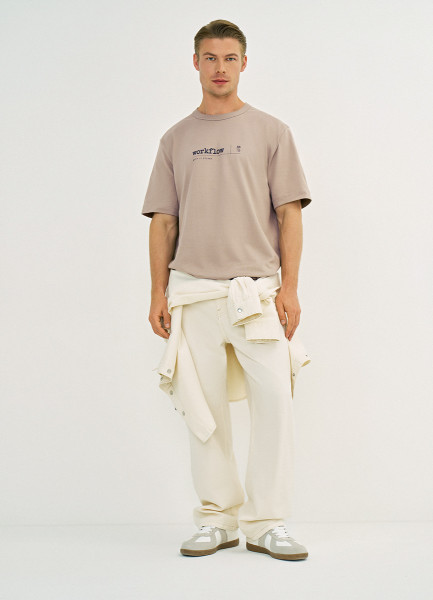 Футболка с текстовым принтом, Бежевый