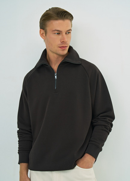 Толстовка с воротником-стойкой на молнии, Коричневый