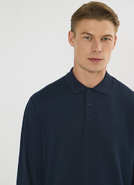 Поло с длинным рукавом, Синий