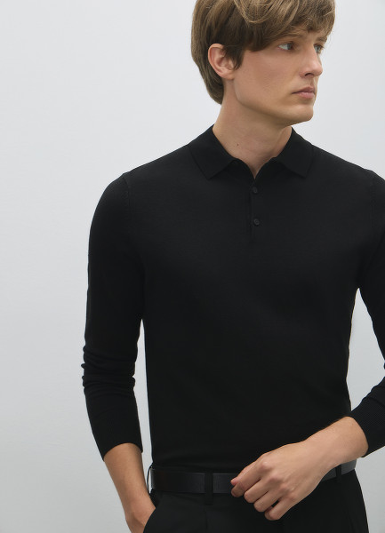 Вязаный джемпер-поло с длинным рукавом, Черный