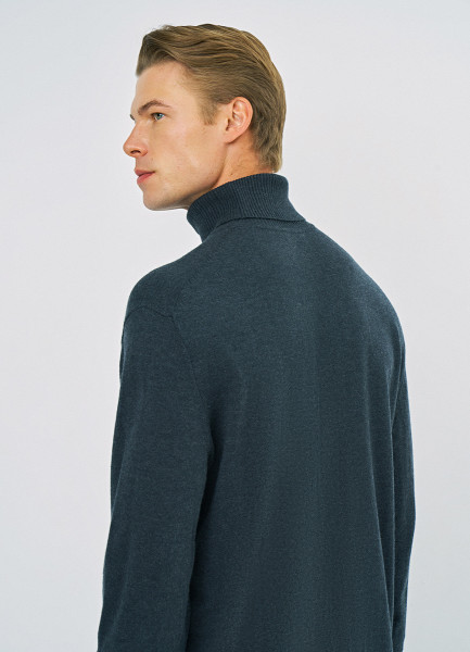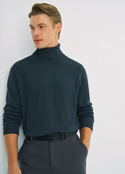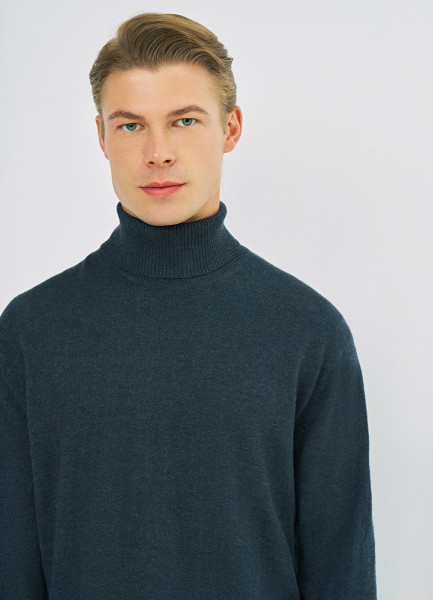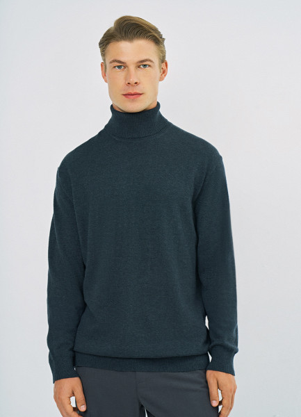 Вязаный джемпер-поло с длинным рукавом, Голубой