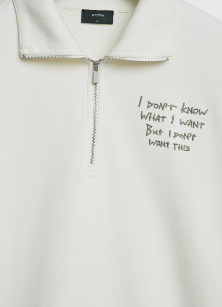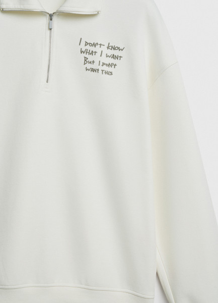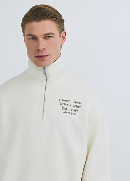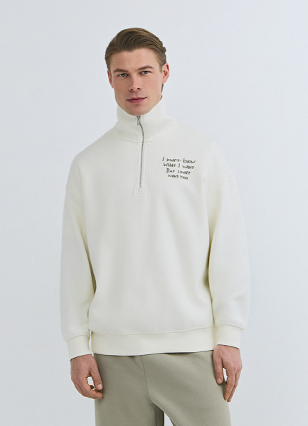 Толстовка с воротником-стойкой на молнии, Белый