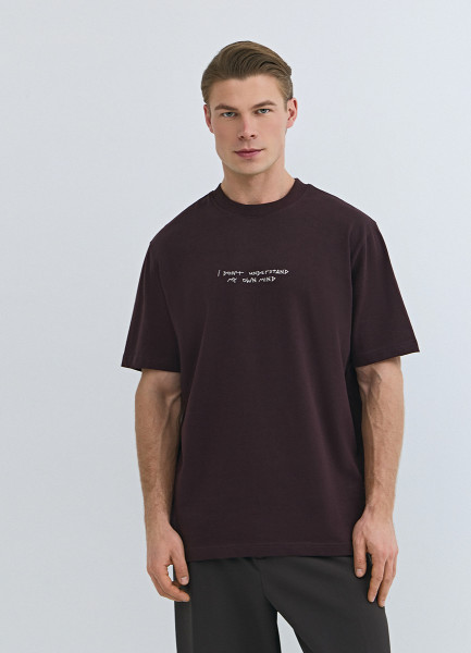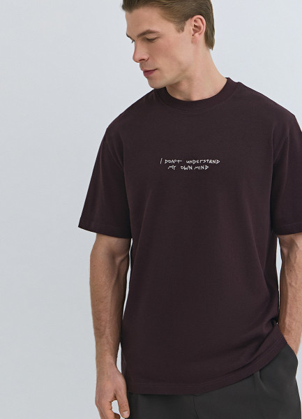 Футболка с текстовой вышивкой, Фиолетовый
