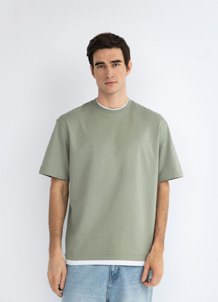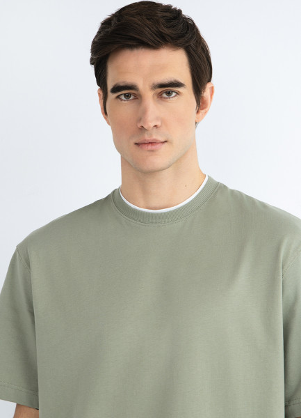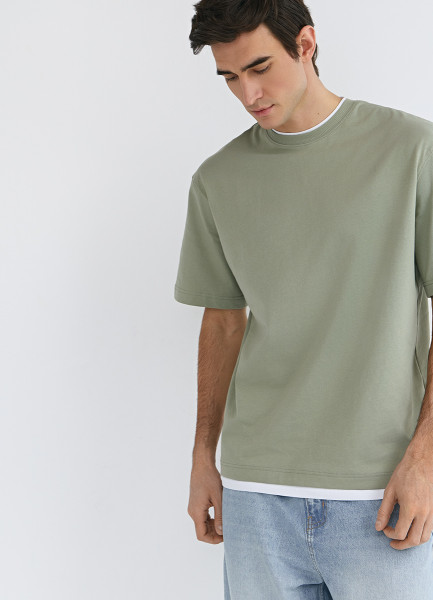 Футболка из плотного хлопка с контрастными деталями, Зеленый