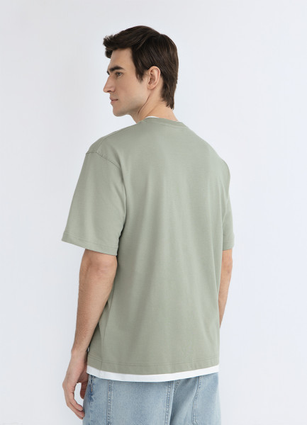 Футболка из плотного хлопка с карманом, Зеленый