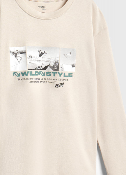 Лонгслив с принтом для мальчиков, Бежевый
