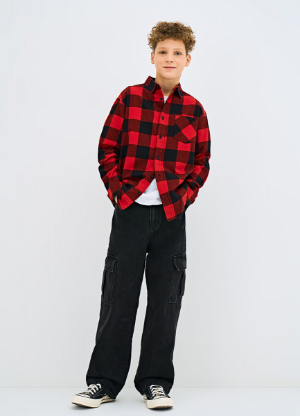 Широкие джинсы с карго-карманами для мальчиков, Черный