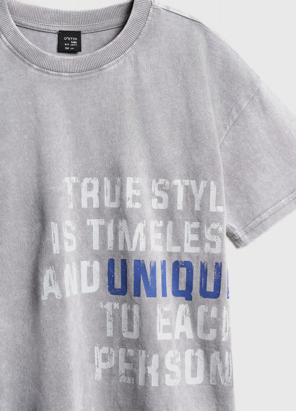 Футболка оверсайз с принтом для мальчиков, Серый