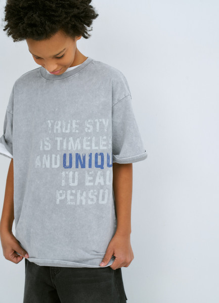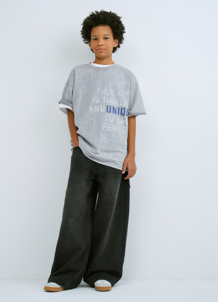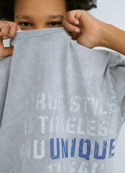 Футболка оверсайз с принтом для мальчиков, Серый