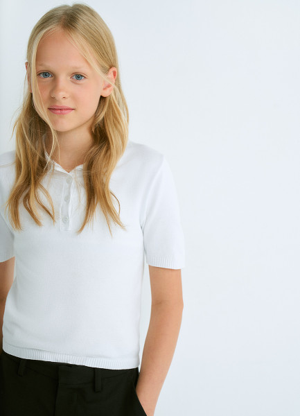 Вязаный джемпер с коротким рукавом для девочек, Белый