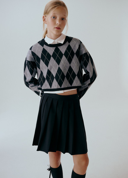 Юбка мини в складку для девочек, Черный
