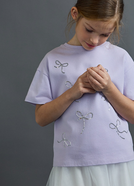 Футболка с пайетками для девочек, Фиолетовый