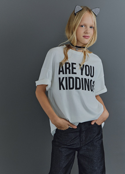 Футболка оверсайз с принтом для девочек, Белый