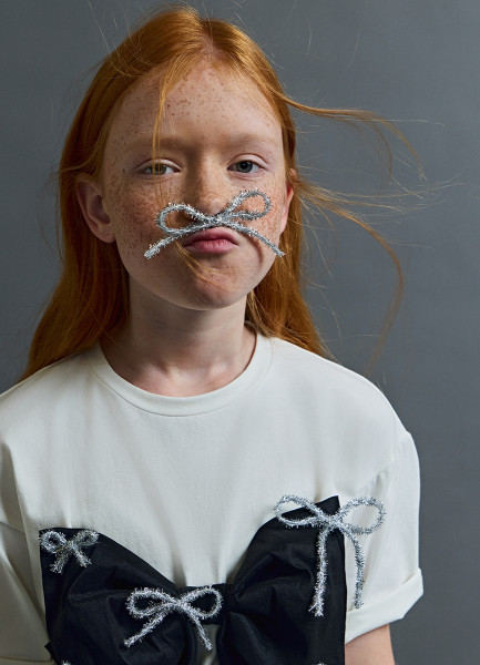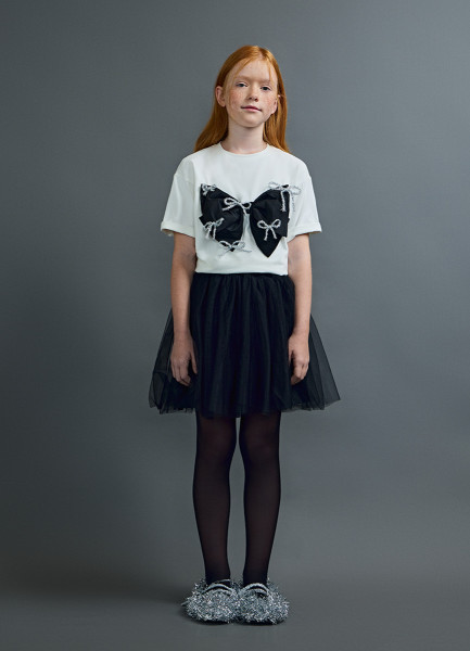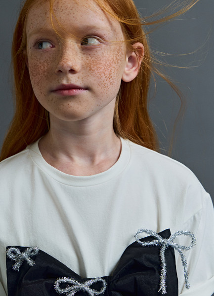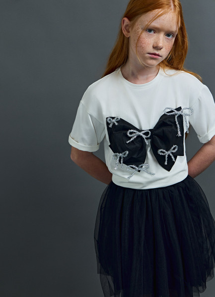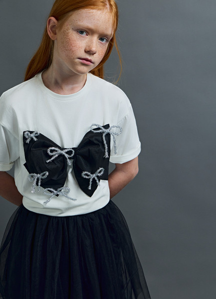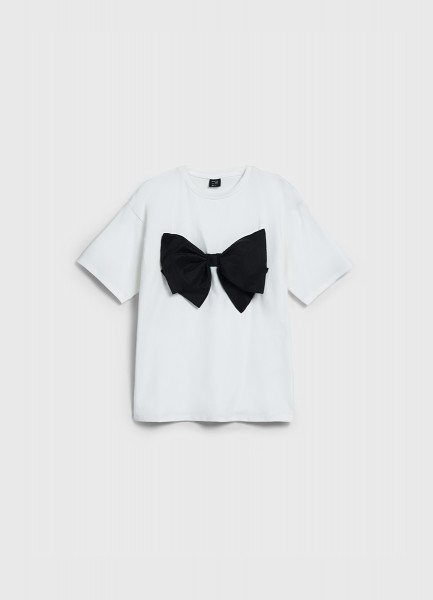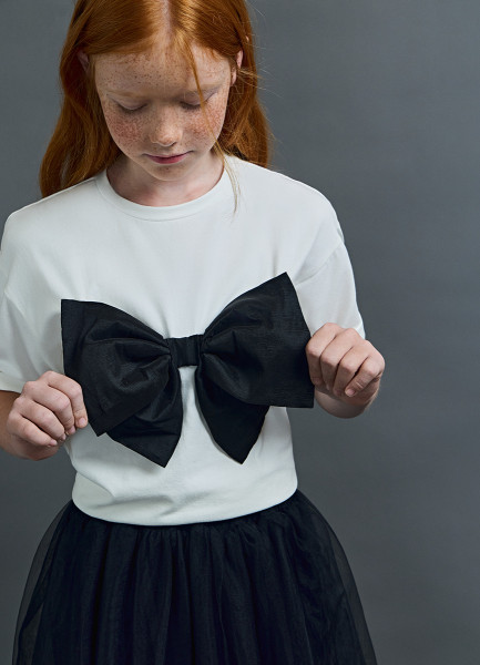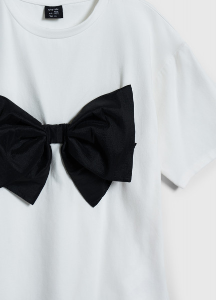 Футболка оверсайз с объёмным бантом для девочек, Белый