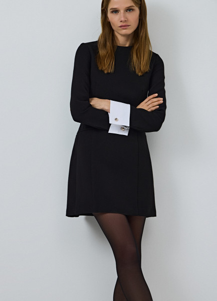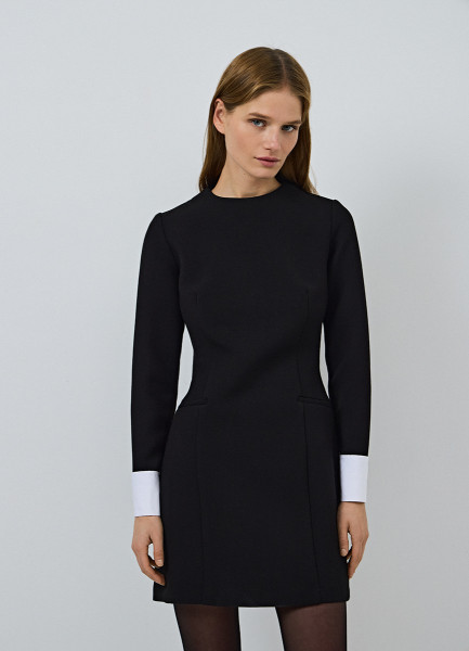Платье мини с контрастными манжетами, Черный