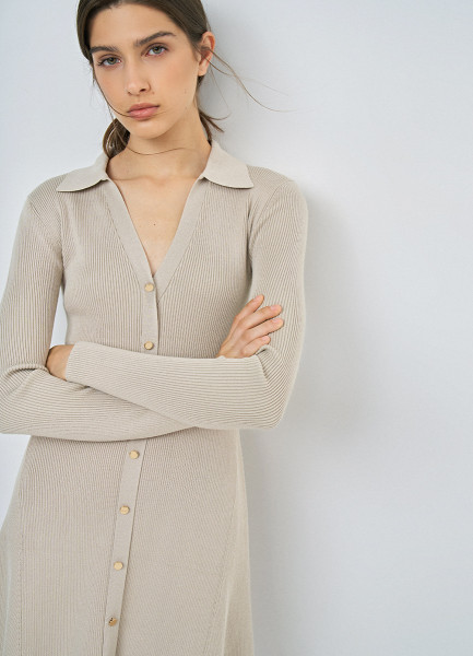 Вязаное платье с воротником поло на пуговицах, Зеленый