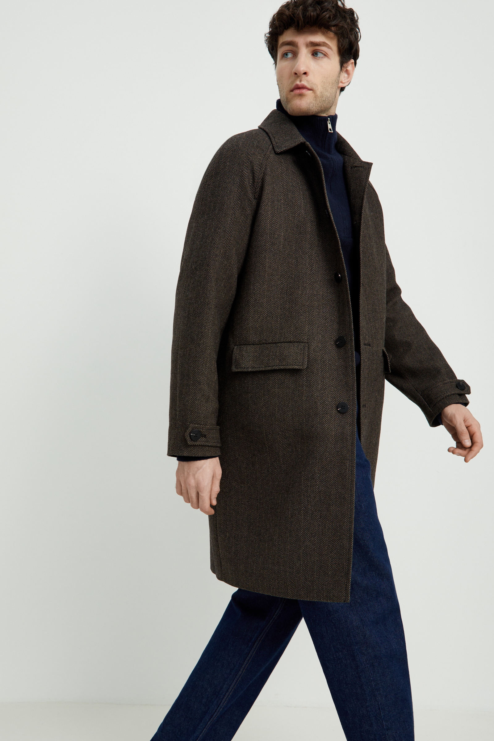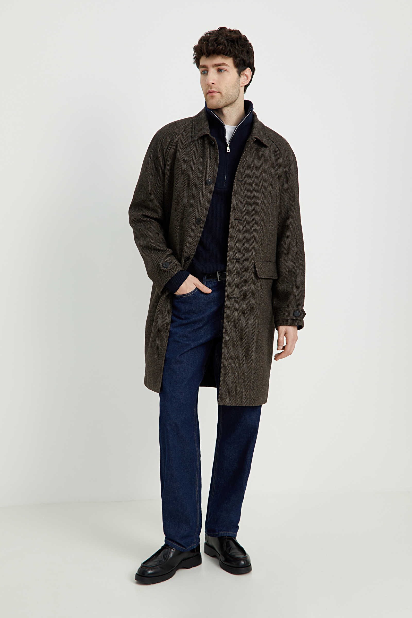 Однобортное пальто с отложным воротником