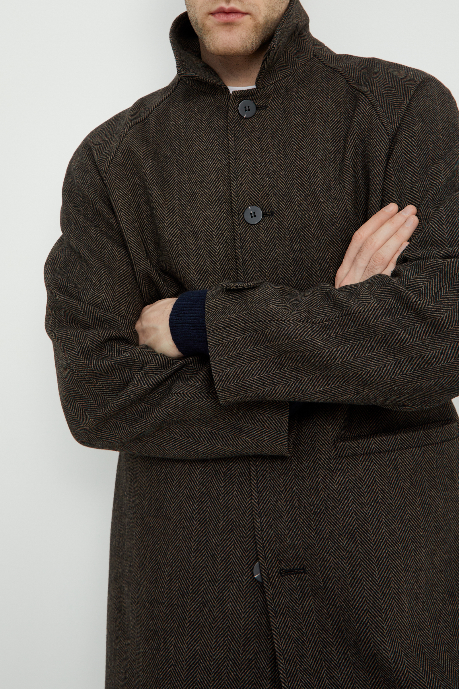 Утепленное пальто с воротником-стойкой