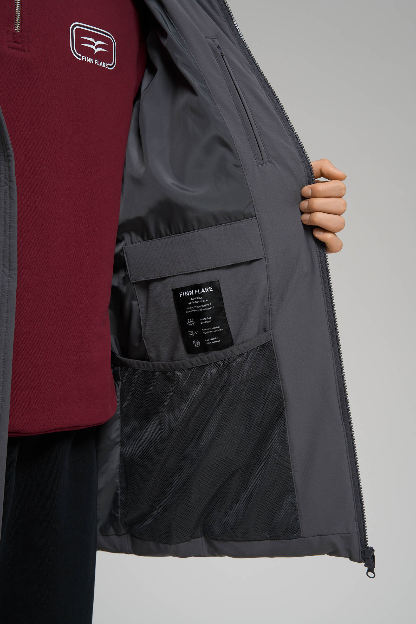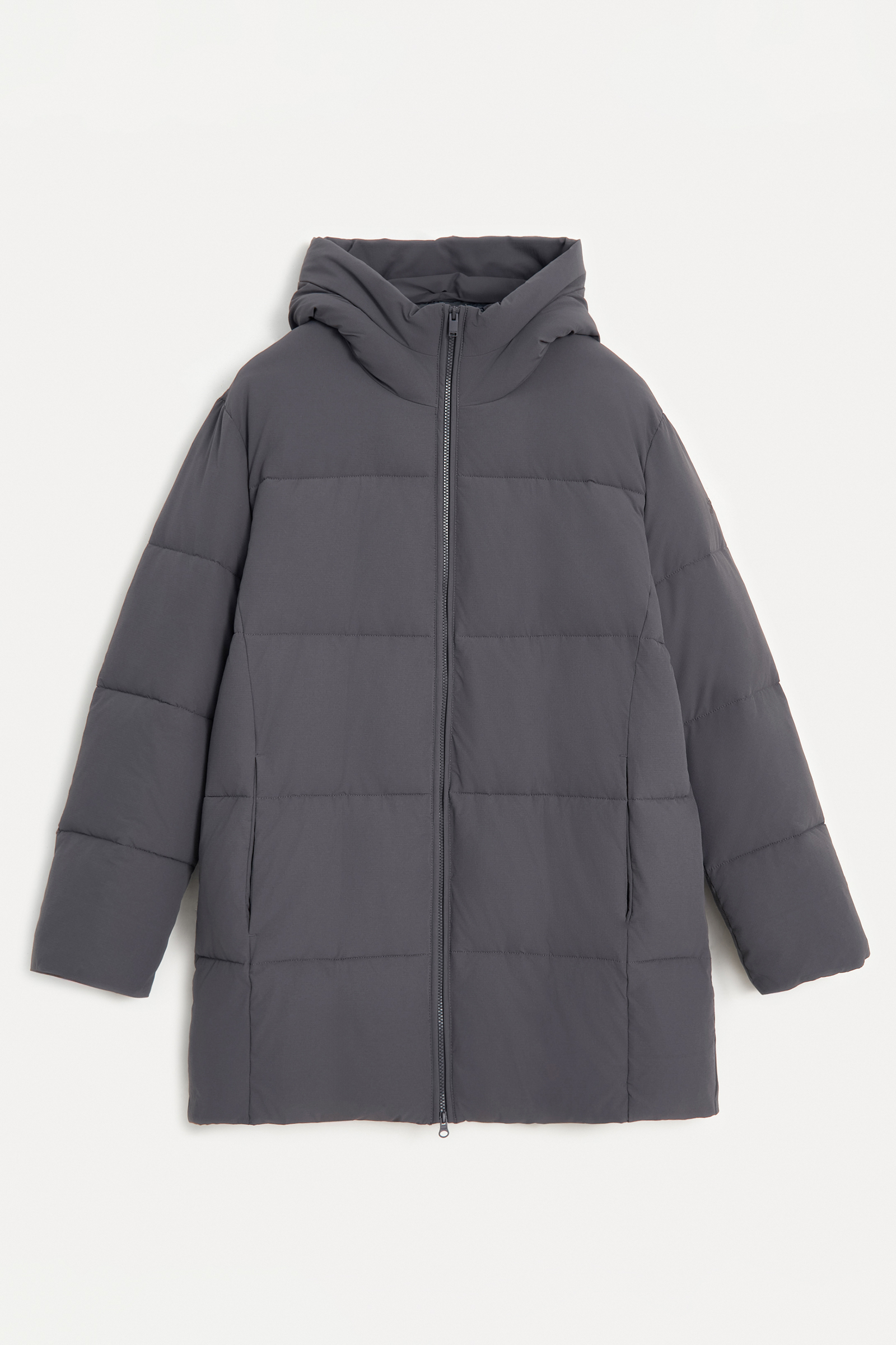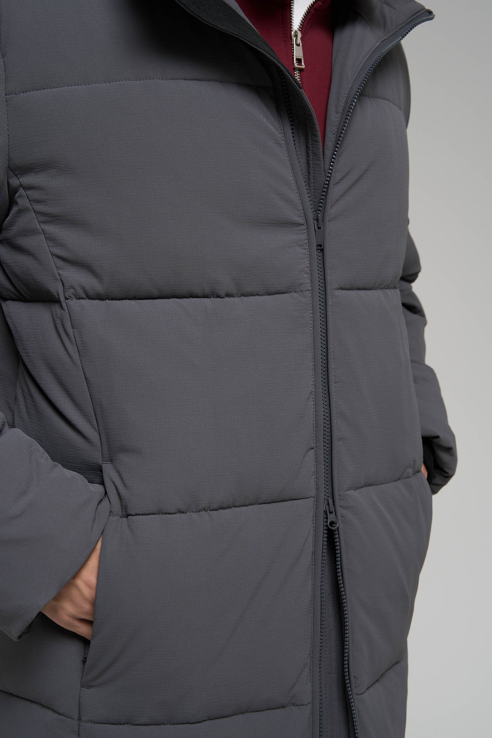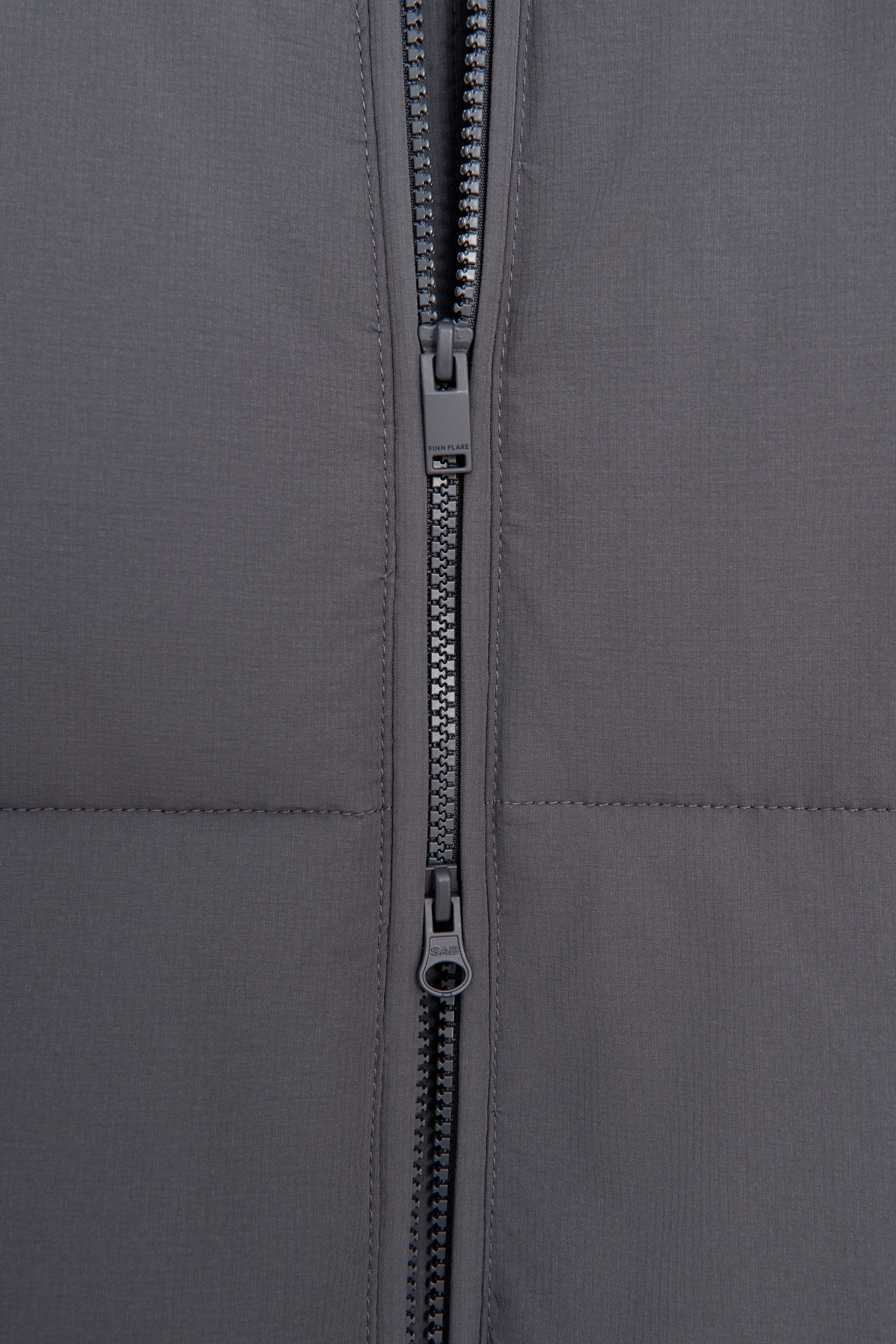 Пуховое полупальто с капюшоном и воротником-стойкой