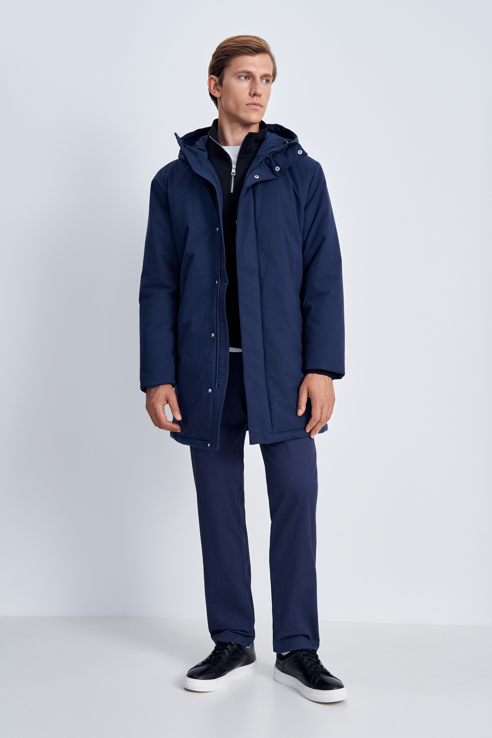 Утепленное пальто с капюшоном
