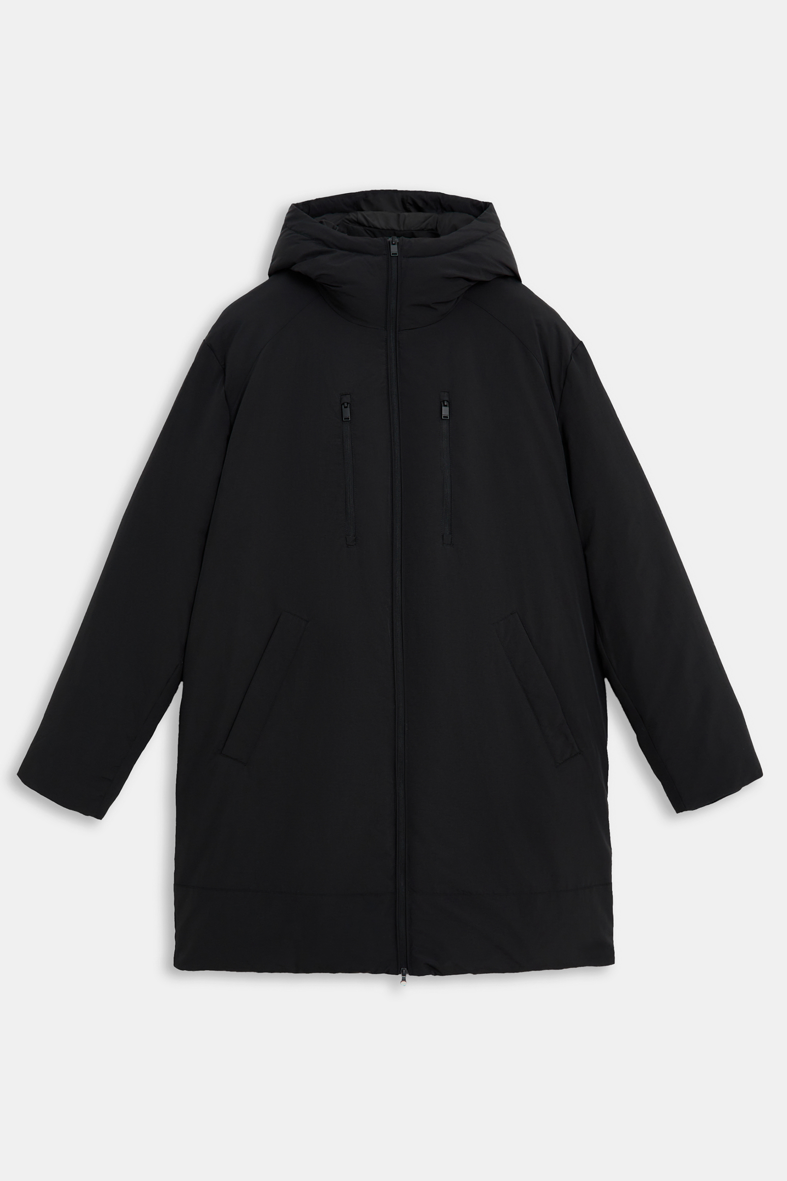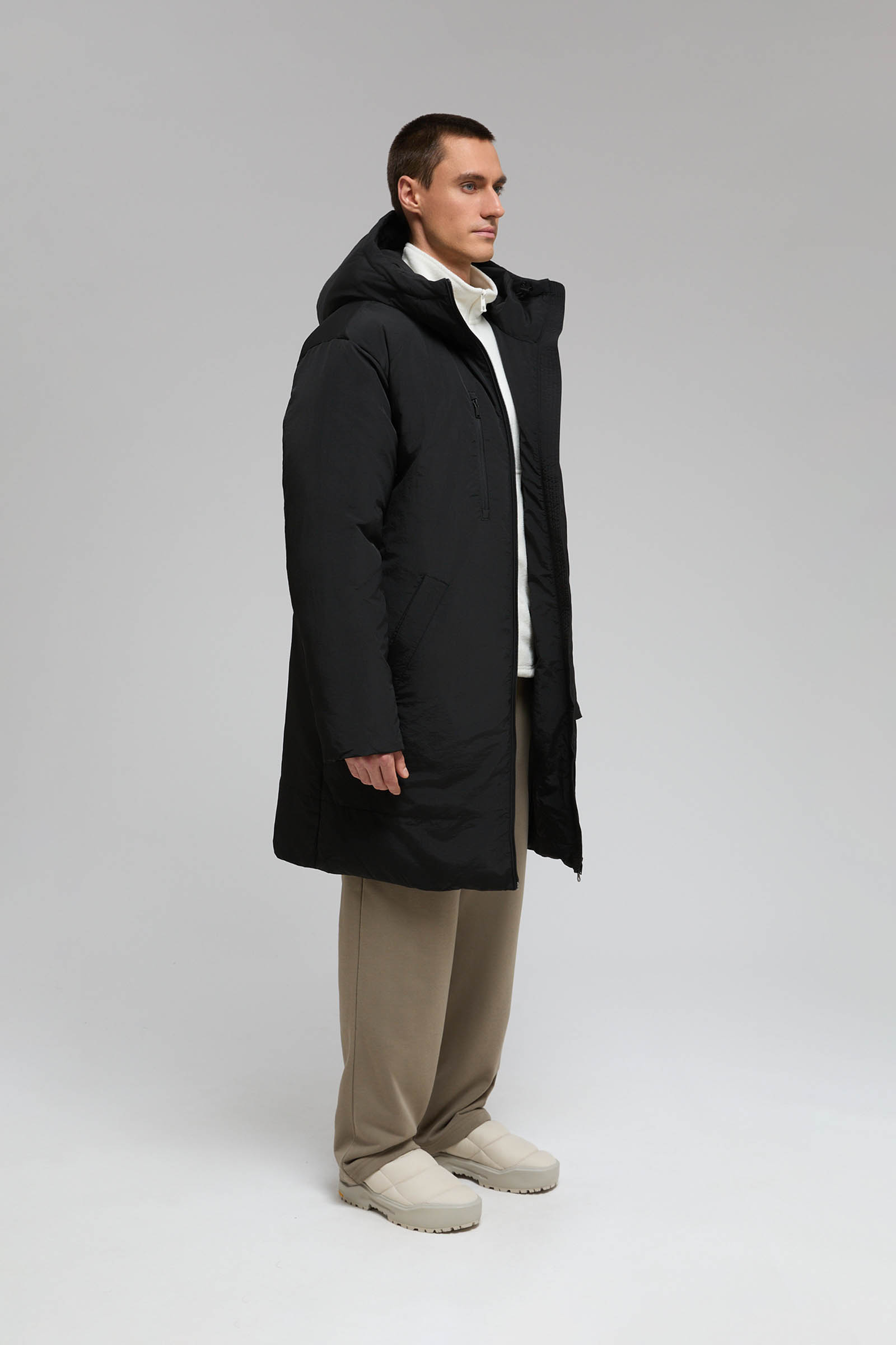 Утепленное пальто с капюшоном