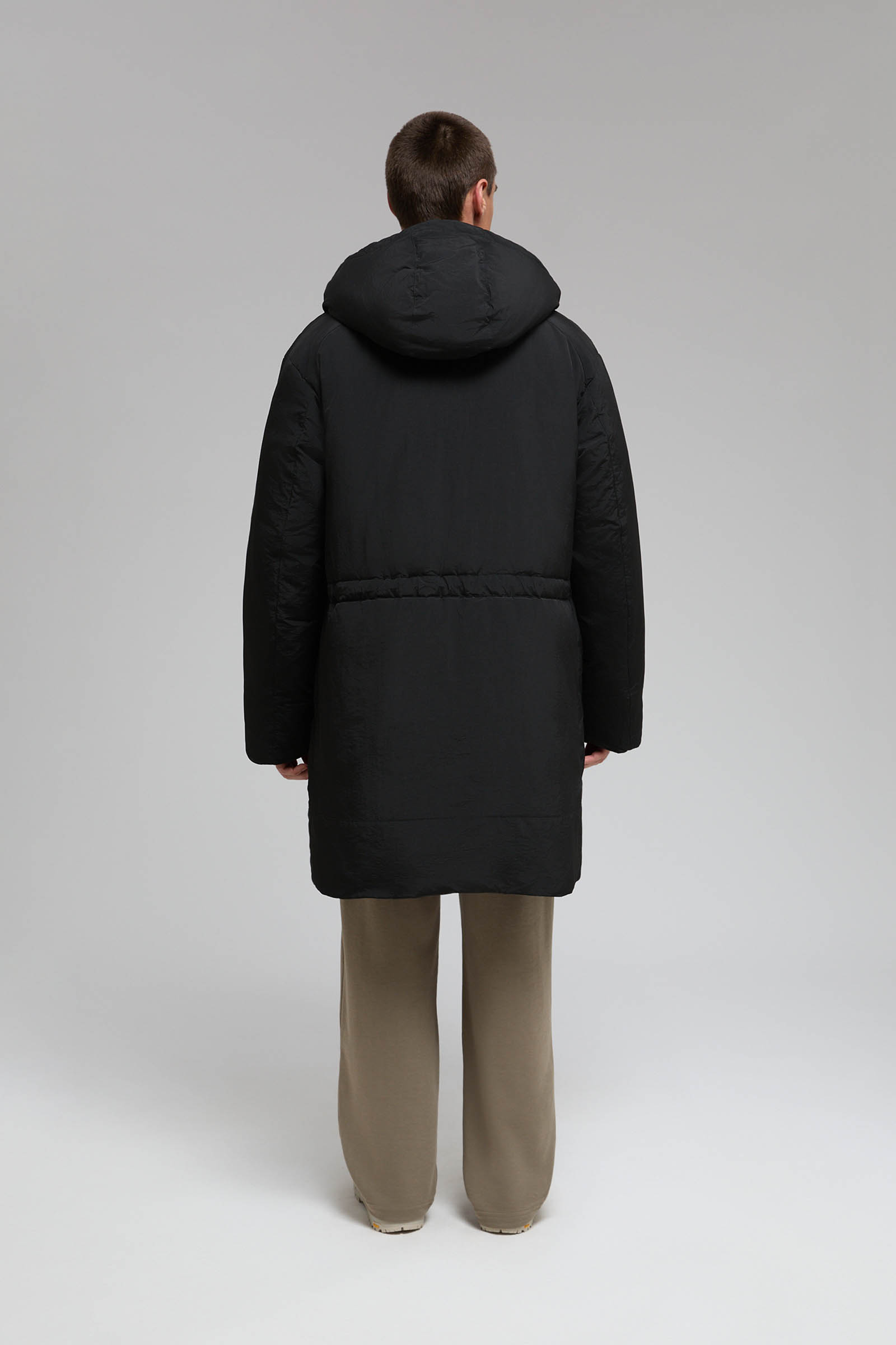 Утепленное пальто с утяжниками на талии