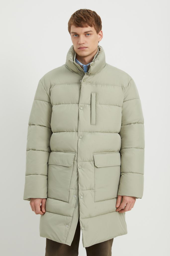 Пуховое пальто с воротником-стойкой