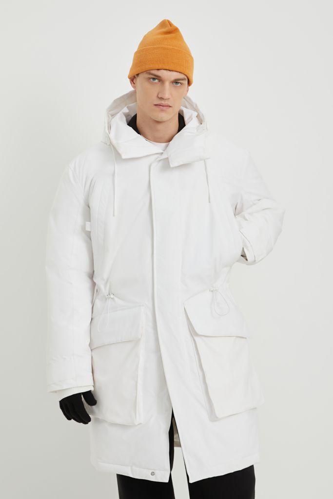 Утепленное пальто с капюшоном