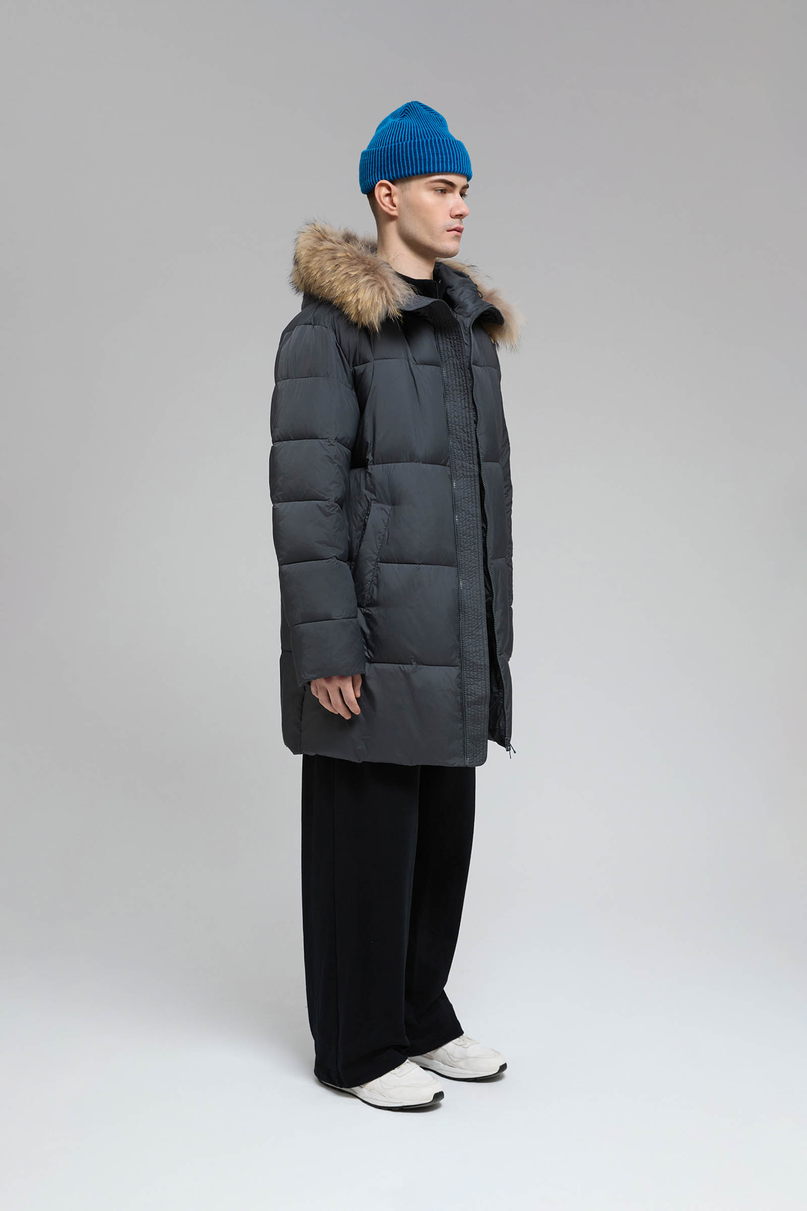 Пуховое пальто с накладными карманами