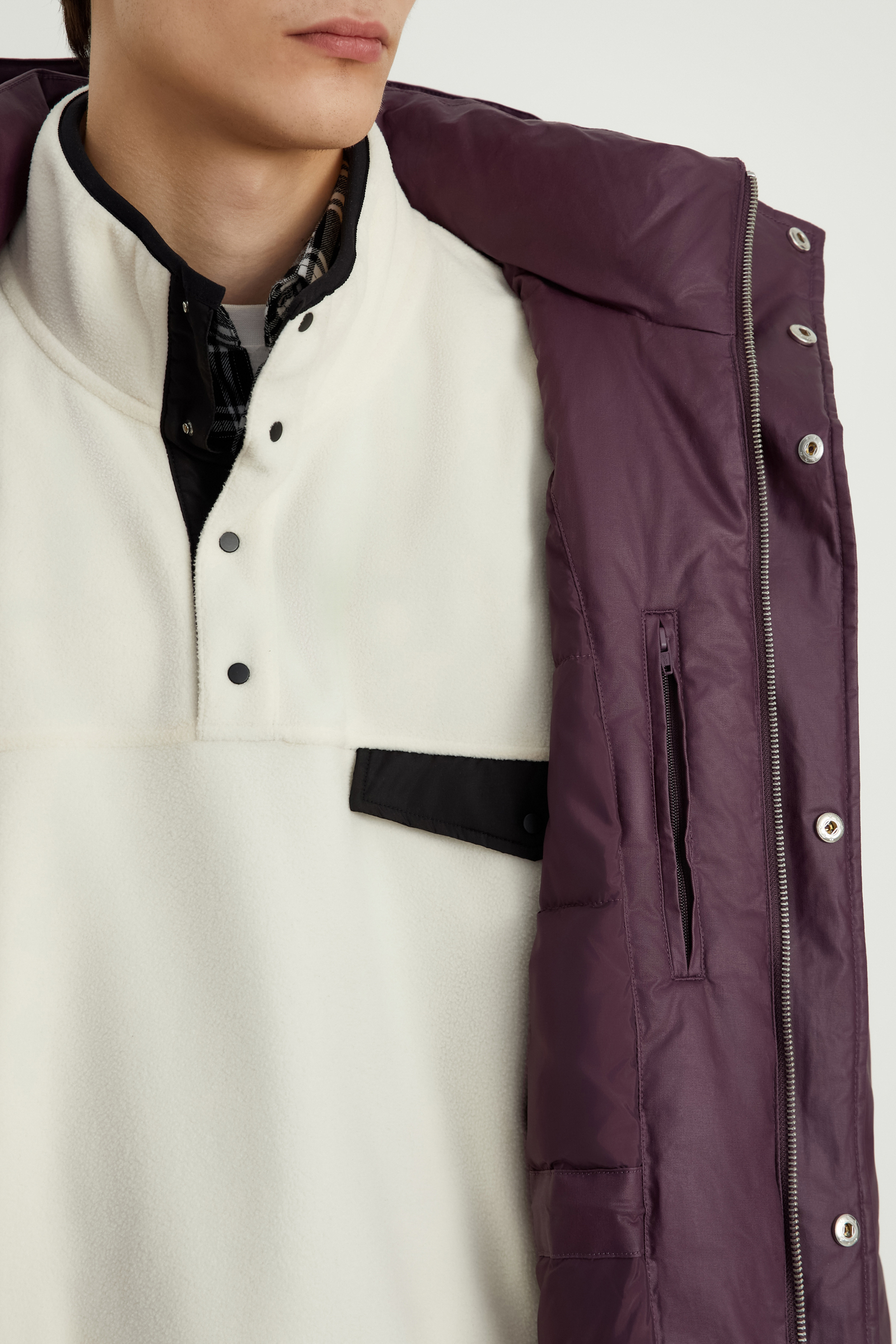 Пуховое полупальто с воротником-стойкой