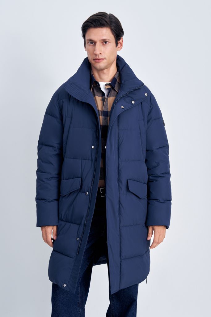 Утепленное пальто с воротником-стойкой
