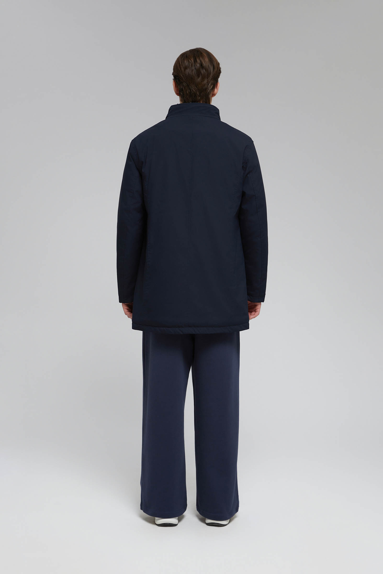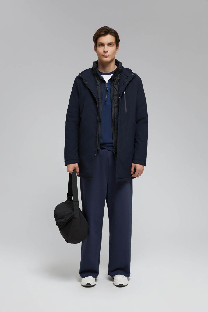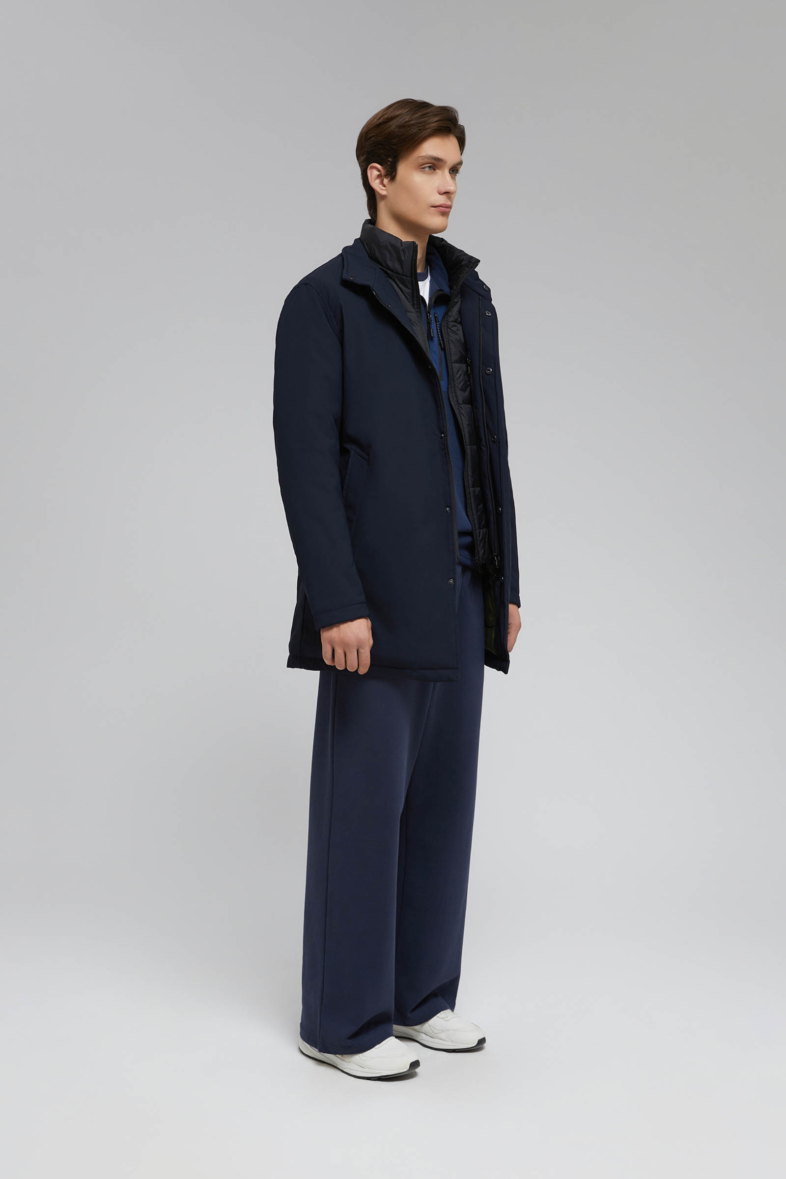 Пуховое полупальто с капюшоном и воротником-стойкой