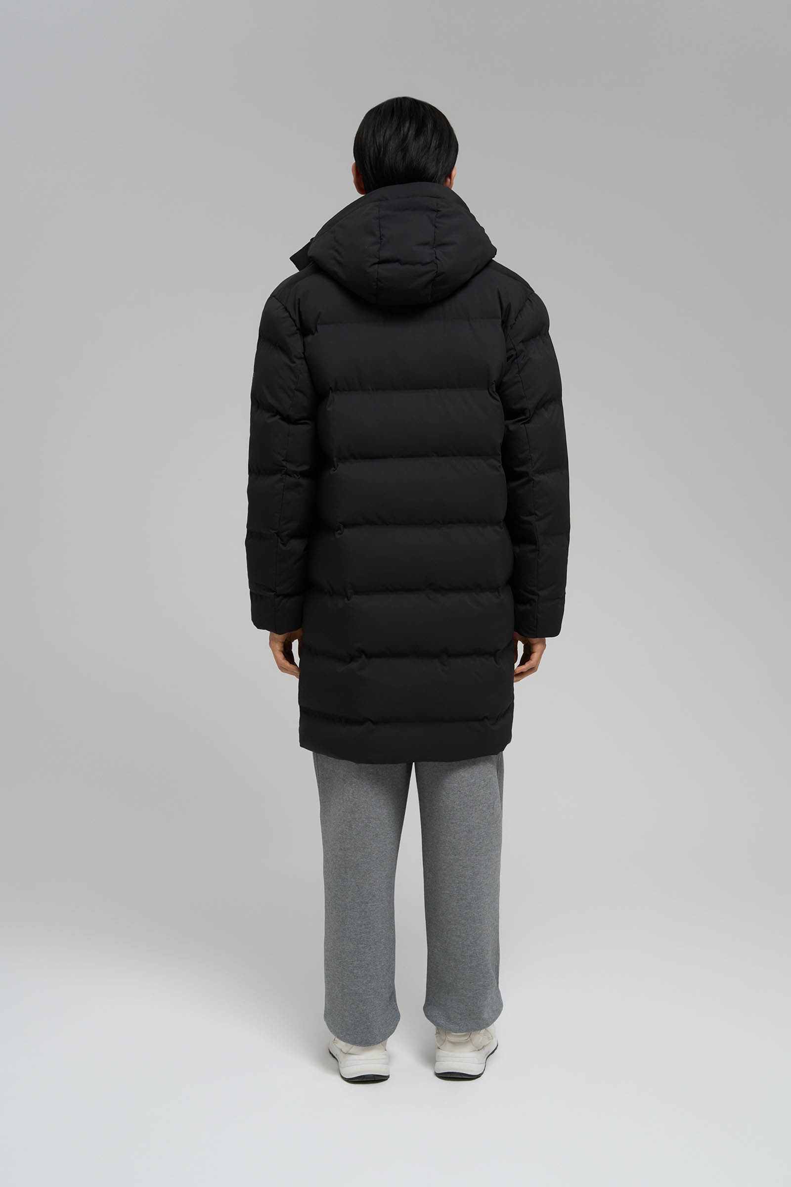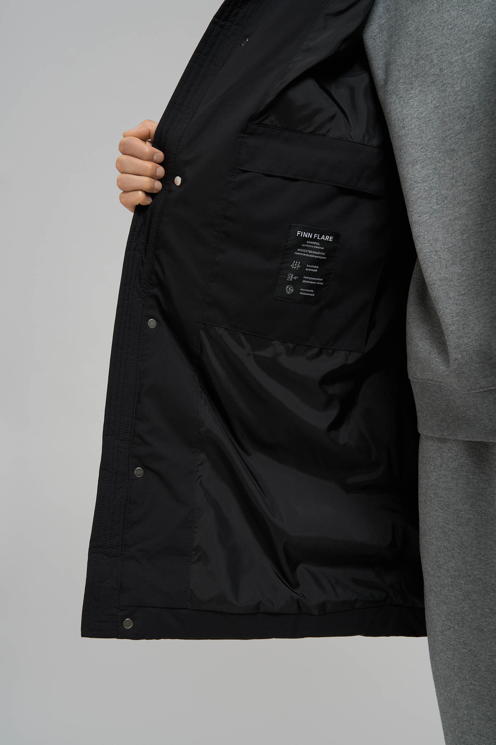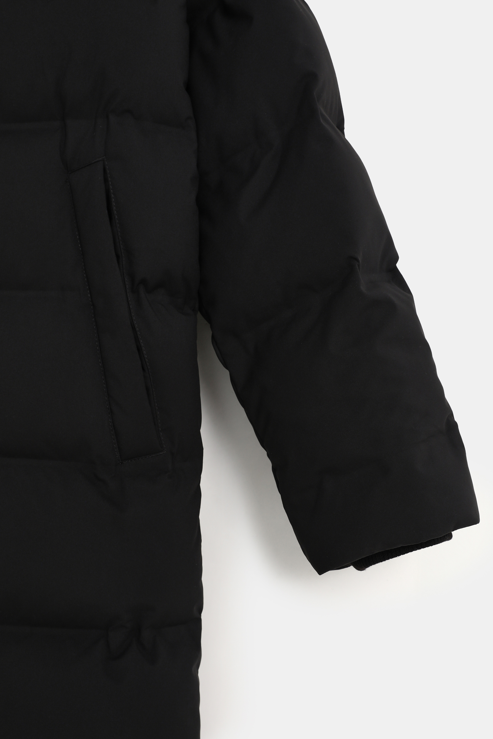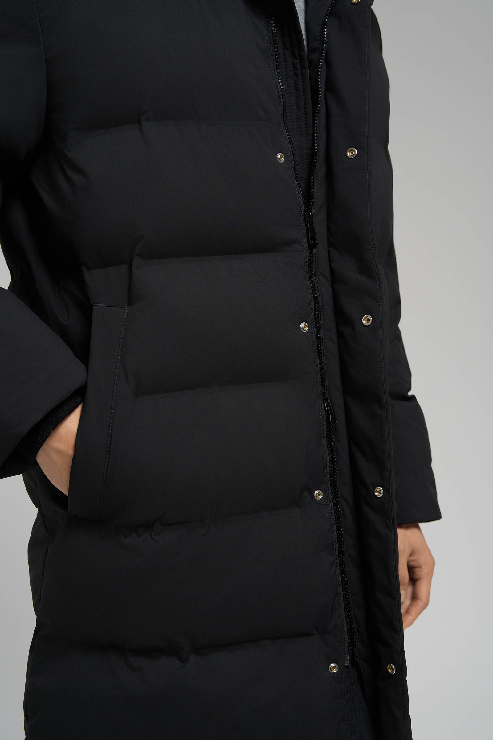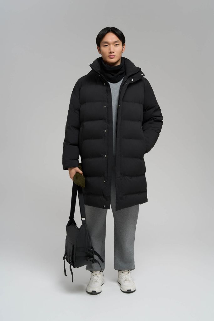 Пуховое полупальто с капюшоном и воротником-стойкой