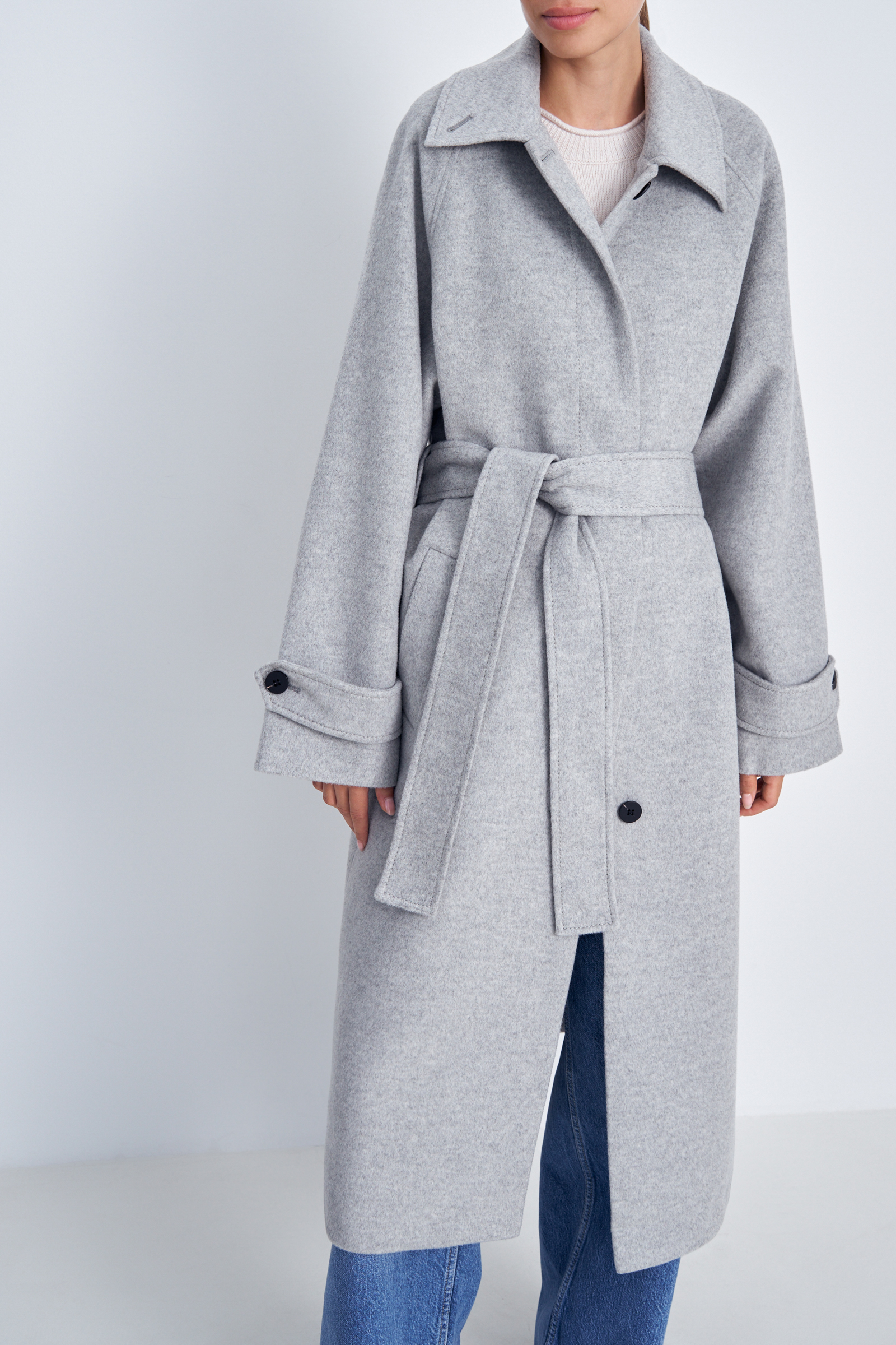 Пальто свободного силуэта с поясом
