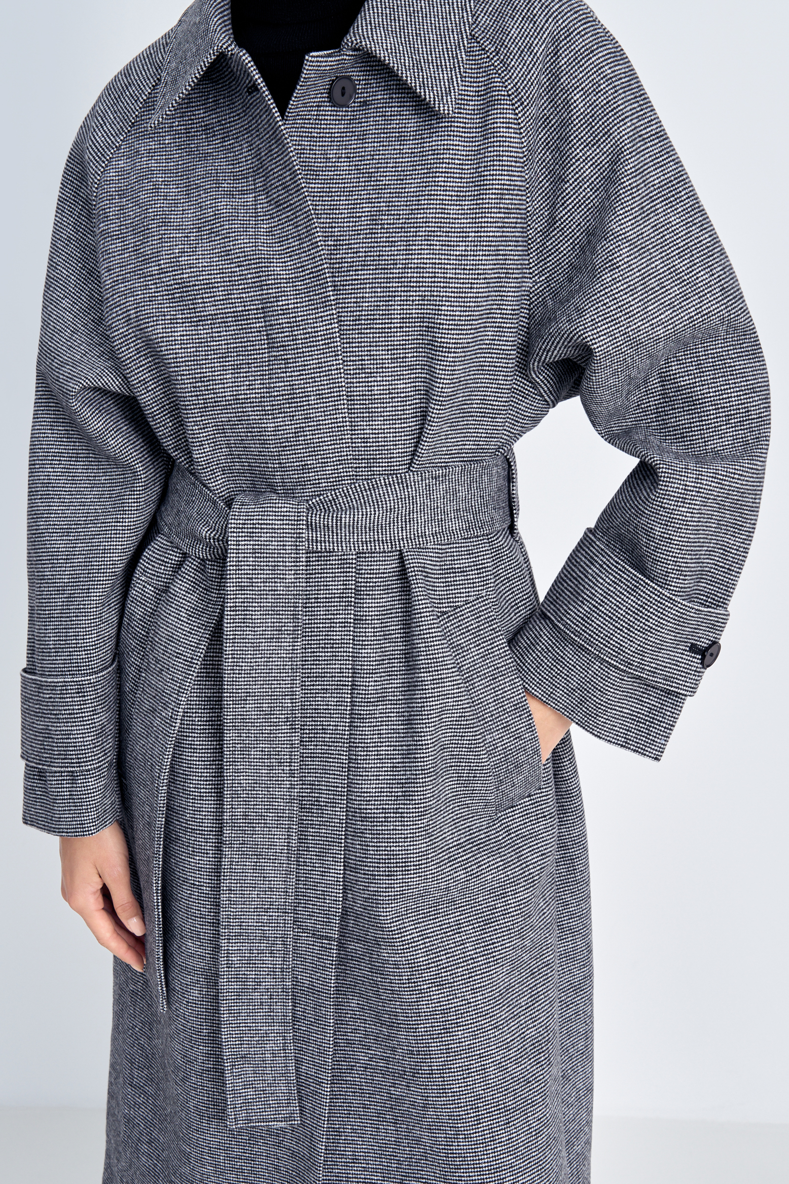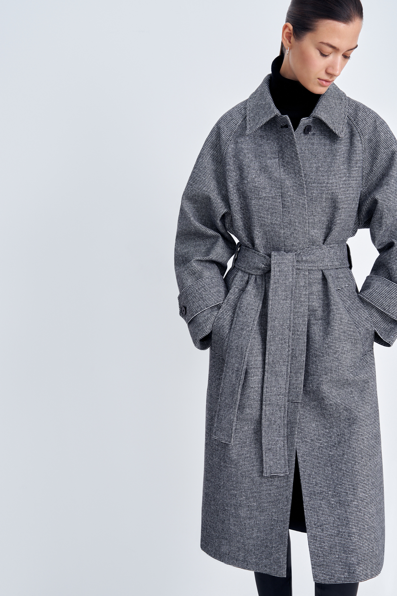 Пальто свободного силуэта с поясом